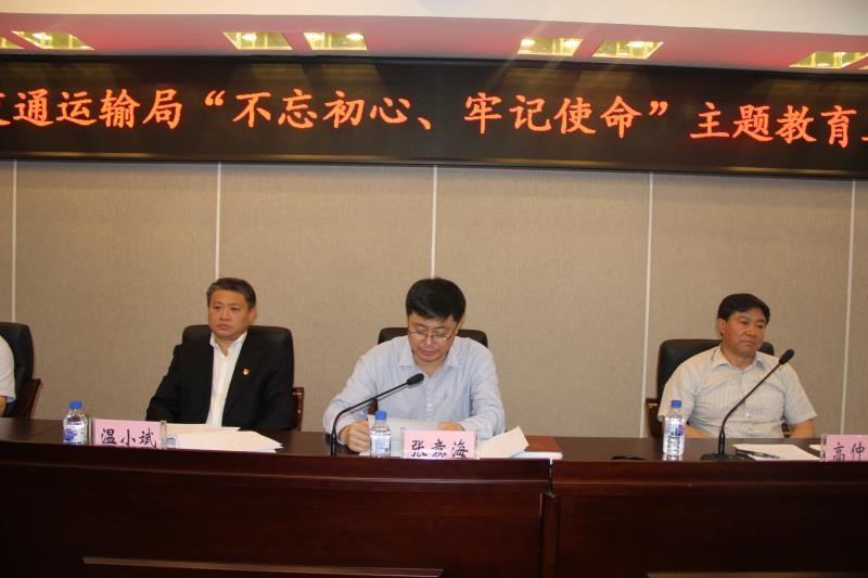 6月11日上午, 365bet手机网址多少_365bet注册送36_365bet足球联赛交通运输局召开“不忘初心、牢记使命”主题教育工作会议,对“不忘初心、牢记使命”主题教育工作进行安排部署。局党组书记、局长张意海对主题教育工作提出明确要求,市委第八巡回指导组温小斌副组长带队到会指导工作。
