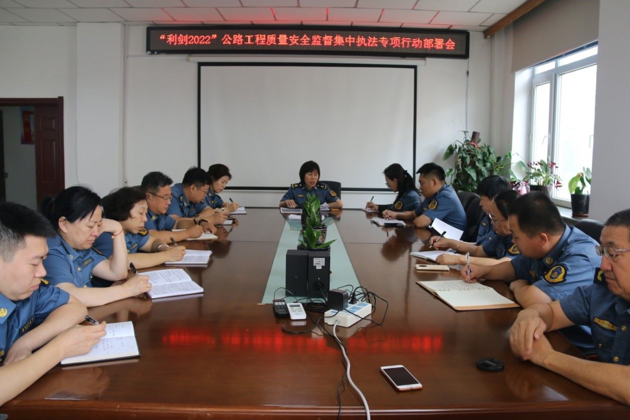 此次集中执法专项行动是按照《吉林省交通运输综合行政执法“利剑2022”专项行动方案》要求,采取“四不两直”的方式,对市管公路6个建设项目进行一次全面的突击检查。会议对检查的时间、人员、项目、内容及相关准备工作做了详细部署。检查将针对施工现场安全生产作业、安全防护措施、路基工程、路面基层及面层、桥梁工程、施工工艺及实体质量进行抽检,旨在进一步督促各从业单位落实质量安全主体责任,全面提升质量安全工作效能。此次行动共分四个检查组,由郝全会大队长带队,从8月29日开始至9月9日,全面开展执法检查工作。