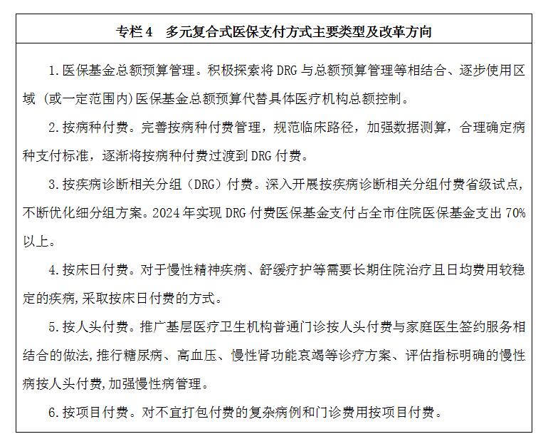 规范压减医保支付自由裁量权,完善多元复合支付方式,全力推动按疾病诊断相关分组付费。
