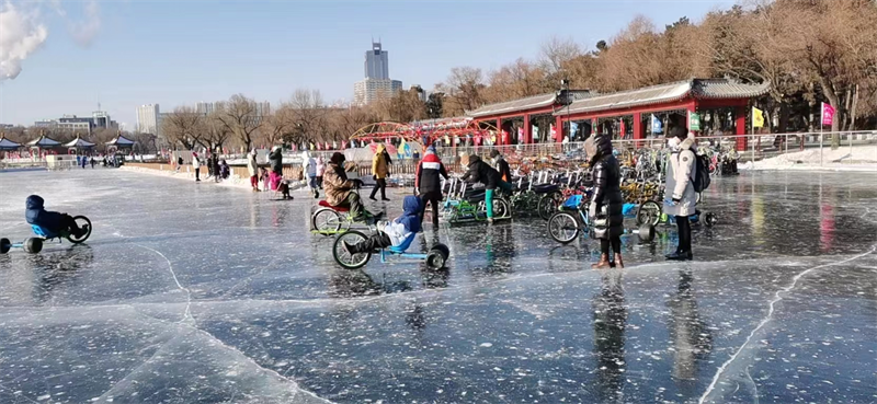 南湖公园为丰富广大市民游客冬季冰雪娱乐项目,感受冰雪世界带来的别样体验,冰上项目设置有章鱼大转盘、转转自行车、雪地保龄球、雪地秋千等14个项目。公园不仅对项目进行了升级,同时对冰雪乐园周边的灯光也进行了升级,增加游客夜间游玩的浓厚氛围,助力发展长春夜经济。