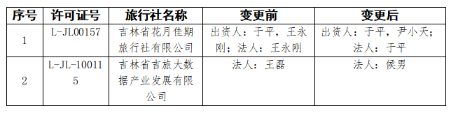 2.旅行社变更:以下2家旅行社相关事项已变更。