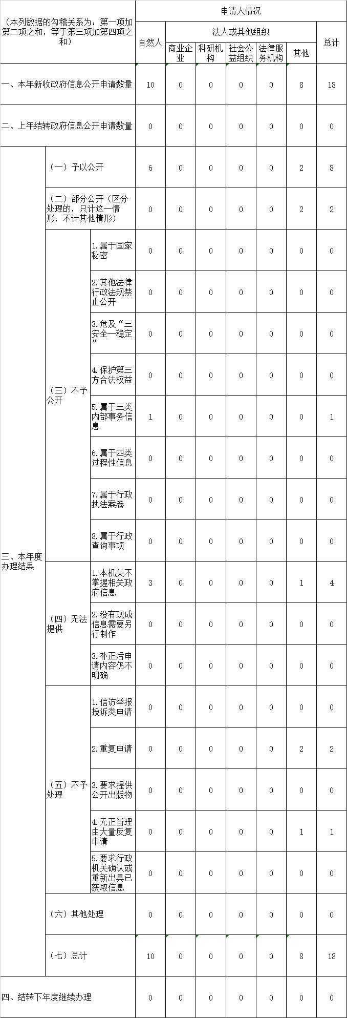 三、收到和处理政府信息公开申请情况