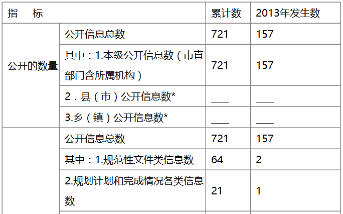 注:“累计数”是指截止208年《条例》5月1日累计发生的数量;“发生数”是指2012年1月1日至2013年1月1日期间发生的数量;带“*”的指标,市直部门不需填写。