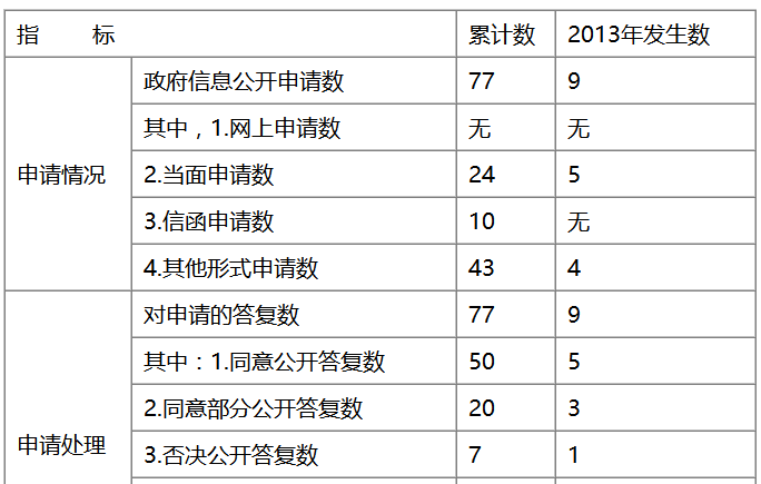 2013年政府信息公开年度报告相关数据统计表